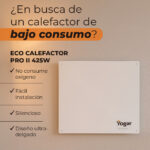 El Panel Eco-Calefactor PRO II 425W de Yogar® transforma cualquier espacio en un ambiente cálido y acogedor, combinando eficiencia energética con un diseño elegante y delgado en color blanco. Su funcionamiento silencioso y continuo lo hace ideal para cualquier rincón del hogar. Ofrece una instalación sencilla en pared y un uso intuitivo, entregando una experiencia de calor agradable sin interrupciones. Además, su bajo consumo energético lo convierte en una solución económica y sustentable para el invierno.